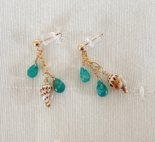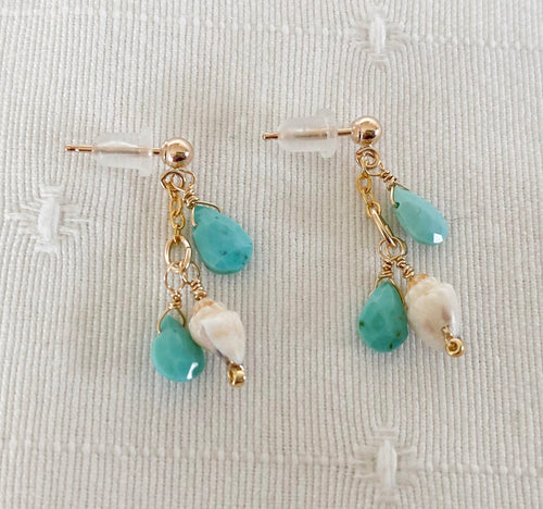 ニイハウシェル&アマゾナイト ゆれるピアス