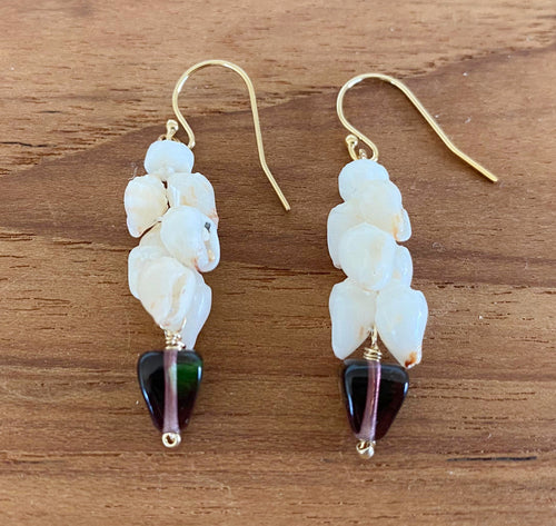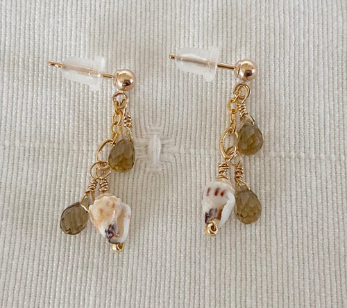 ニイハウシェル&シャンパンクォーツ ゆれるピアス