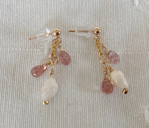 ニイハウシェル&ストロベリークォーツ ゆれるピアス